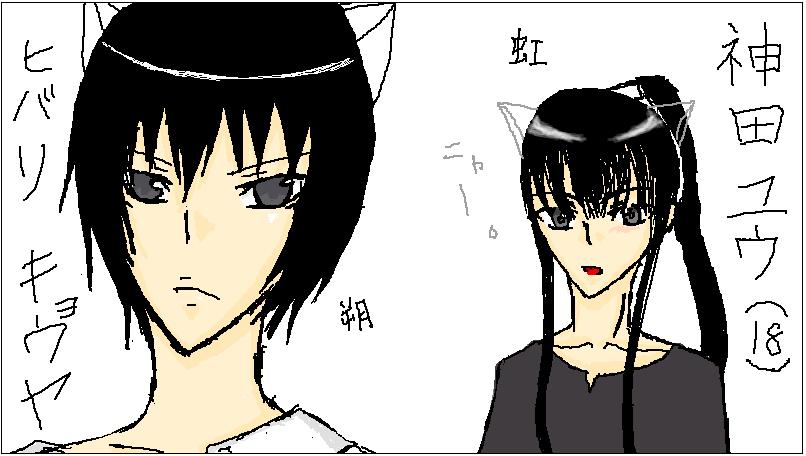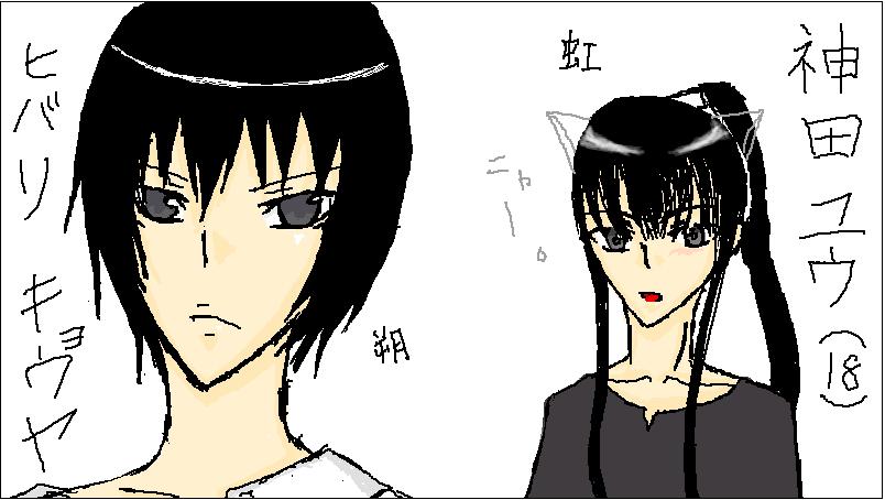 私が神田で朔夜が雲雀さん。骸は描きたくなかったんで。(ひでぇ!)